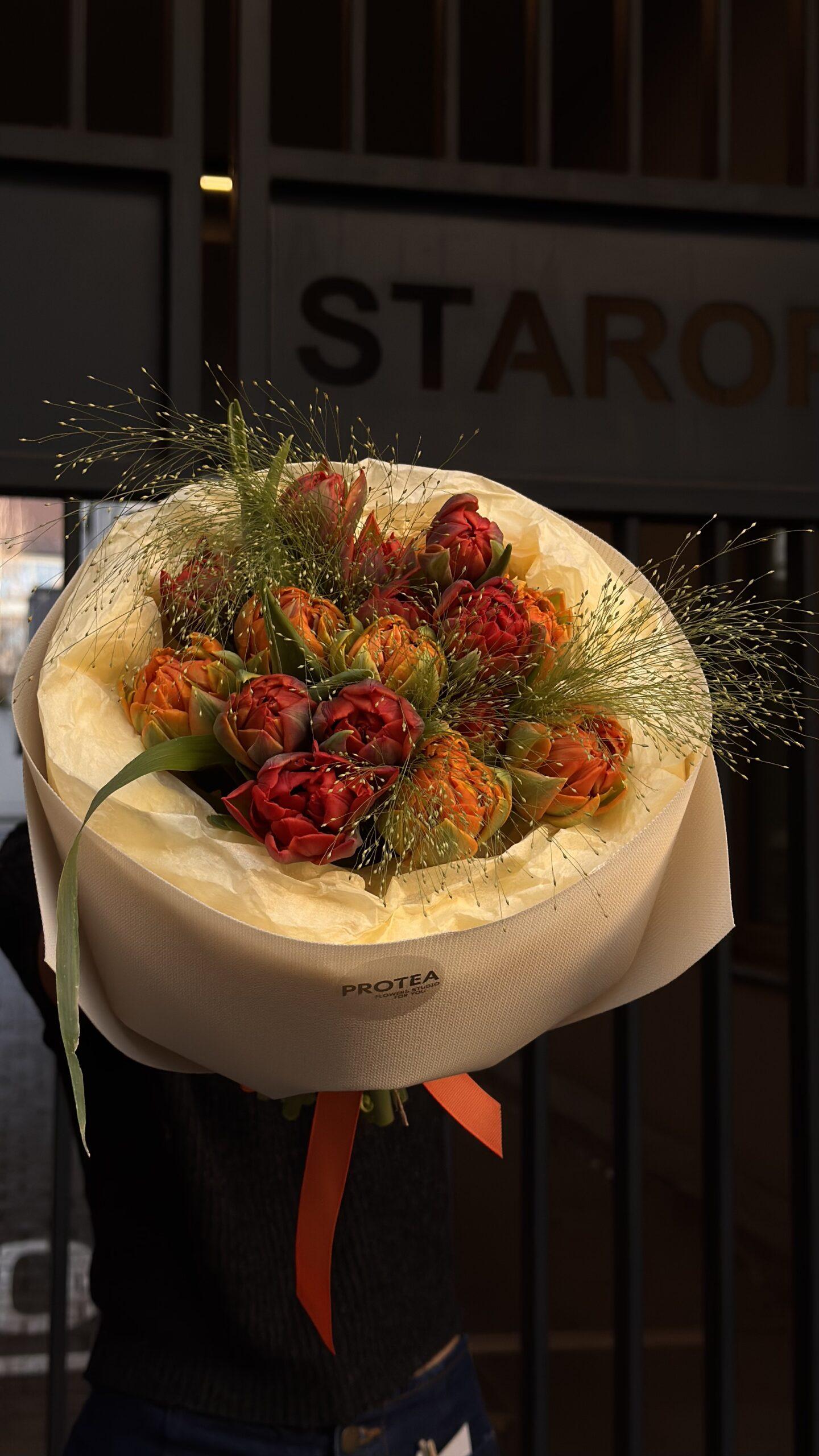 The color and variety of flowers, as well as the type of wrapping, are ordered individually. Availability is subject to current flower stock.