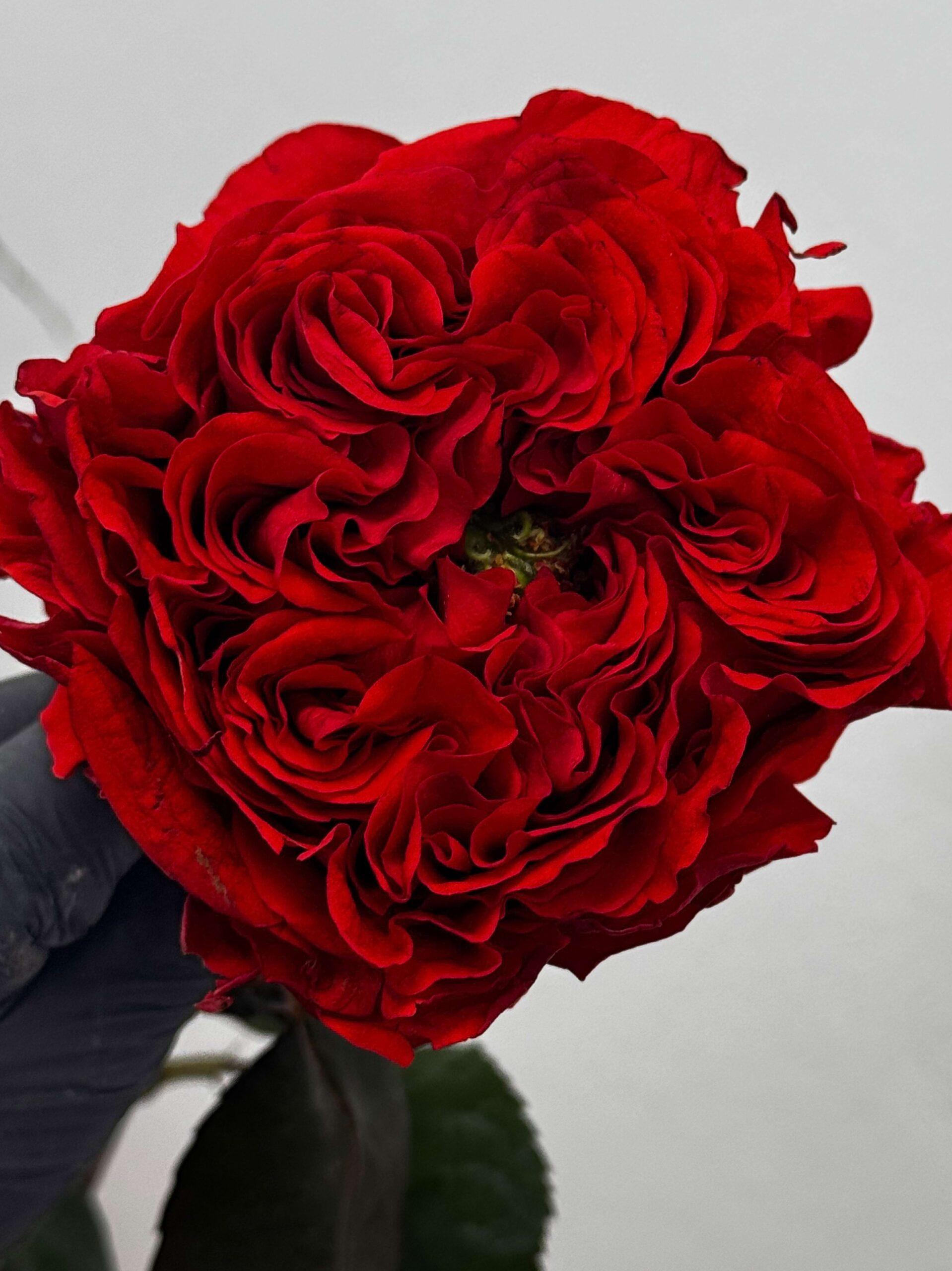 A captivating and unconventional premium garden rose that truly stands out. The Red Monster variety is famous for its rich, velvet-red petals with dramatic ruffled edges and a unique, bright green proliferating center. This bold contrast and architectural shape make it a favorite for those seeking avant-garde floral beauty.